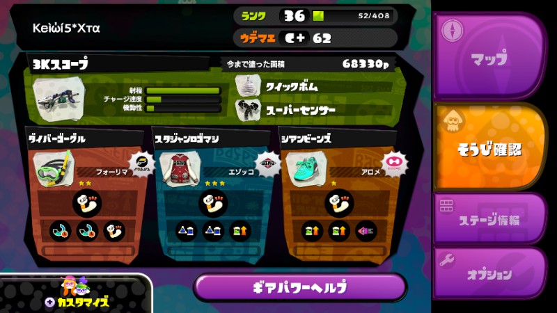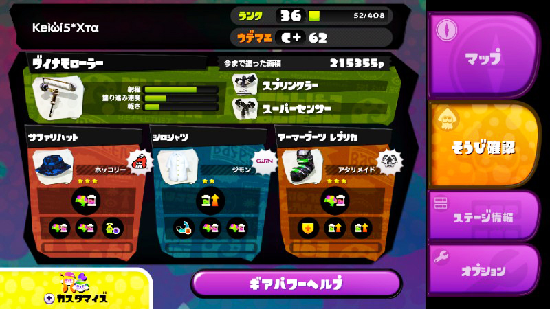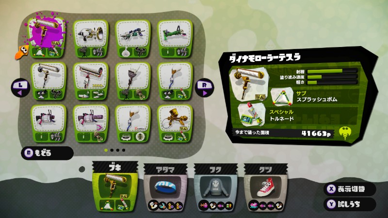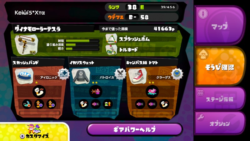 スプラトゥーン、装備と設定を晒せるほど整ってないけど書くこと少ないので書いておきます